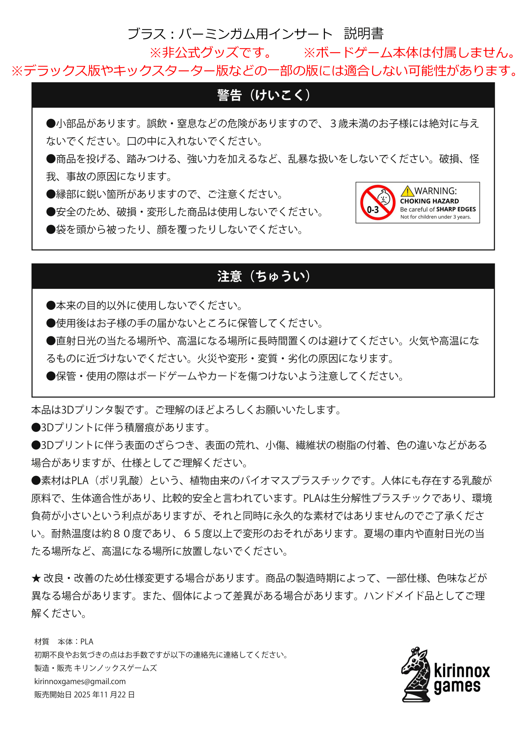 というわけで今回はゲムマ2025秋で販売予定のブラスバーミンガム用インサートを紹介しますね。