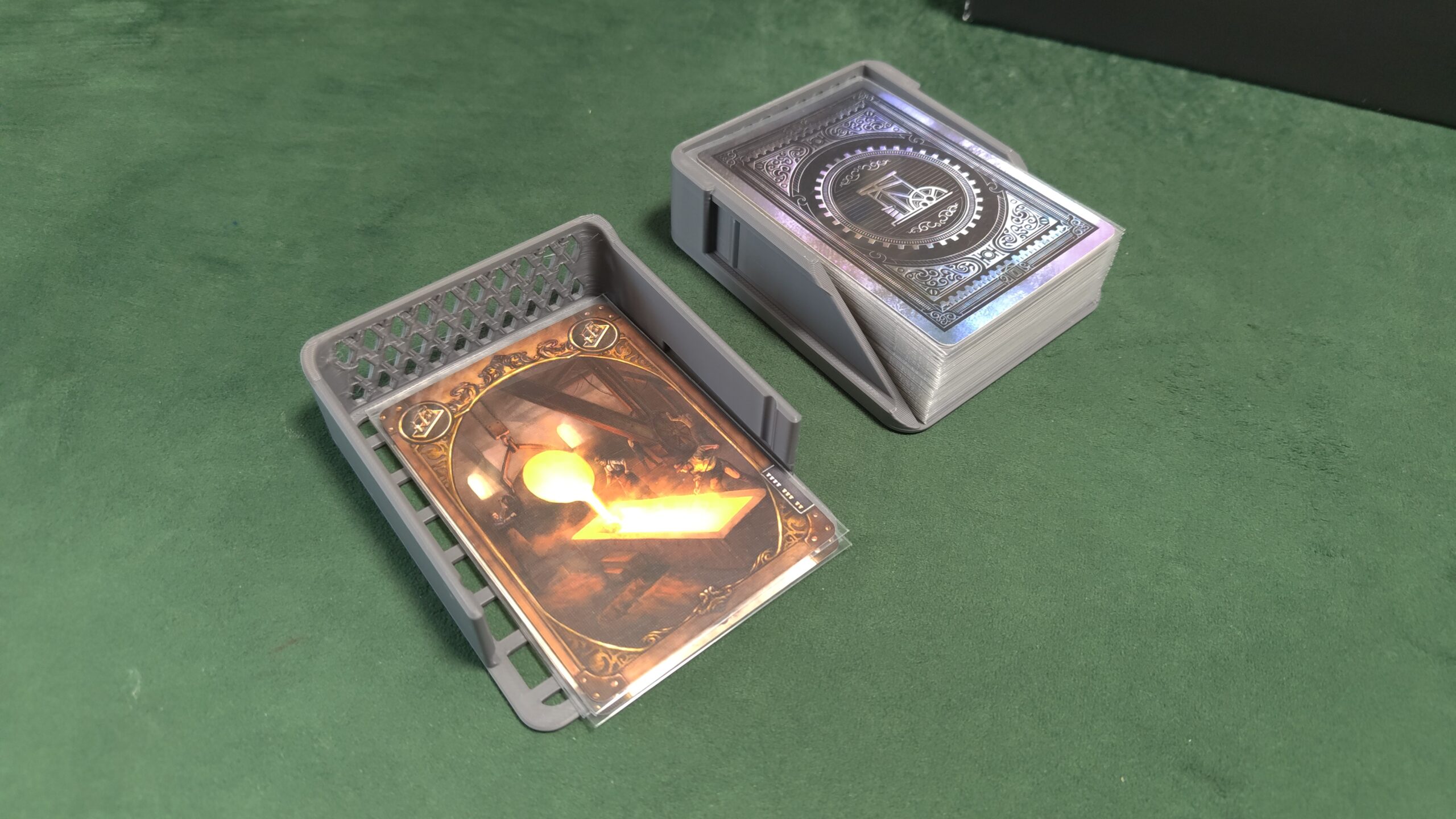 コチラが個人サプライケースです。蓋がスライドで外せる仕様ですが、スライド方向に矢印風のデザインを追加しました(改良点)