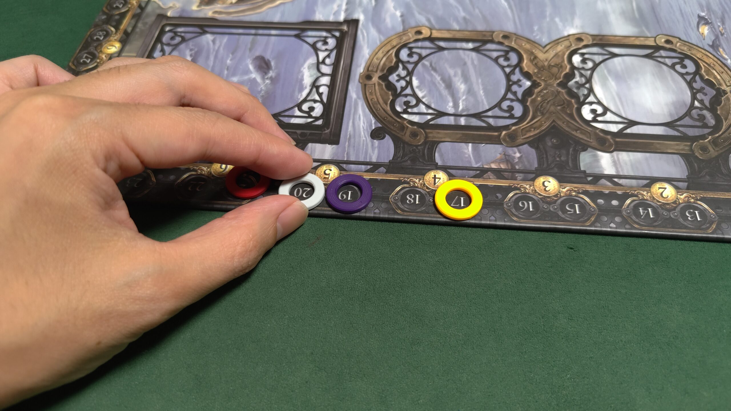 コチラのプレイヤーのトークンはリング状になっていて、穴から数字が見えるので、素早く足し算することができます。