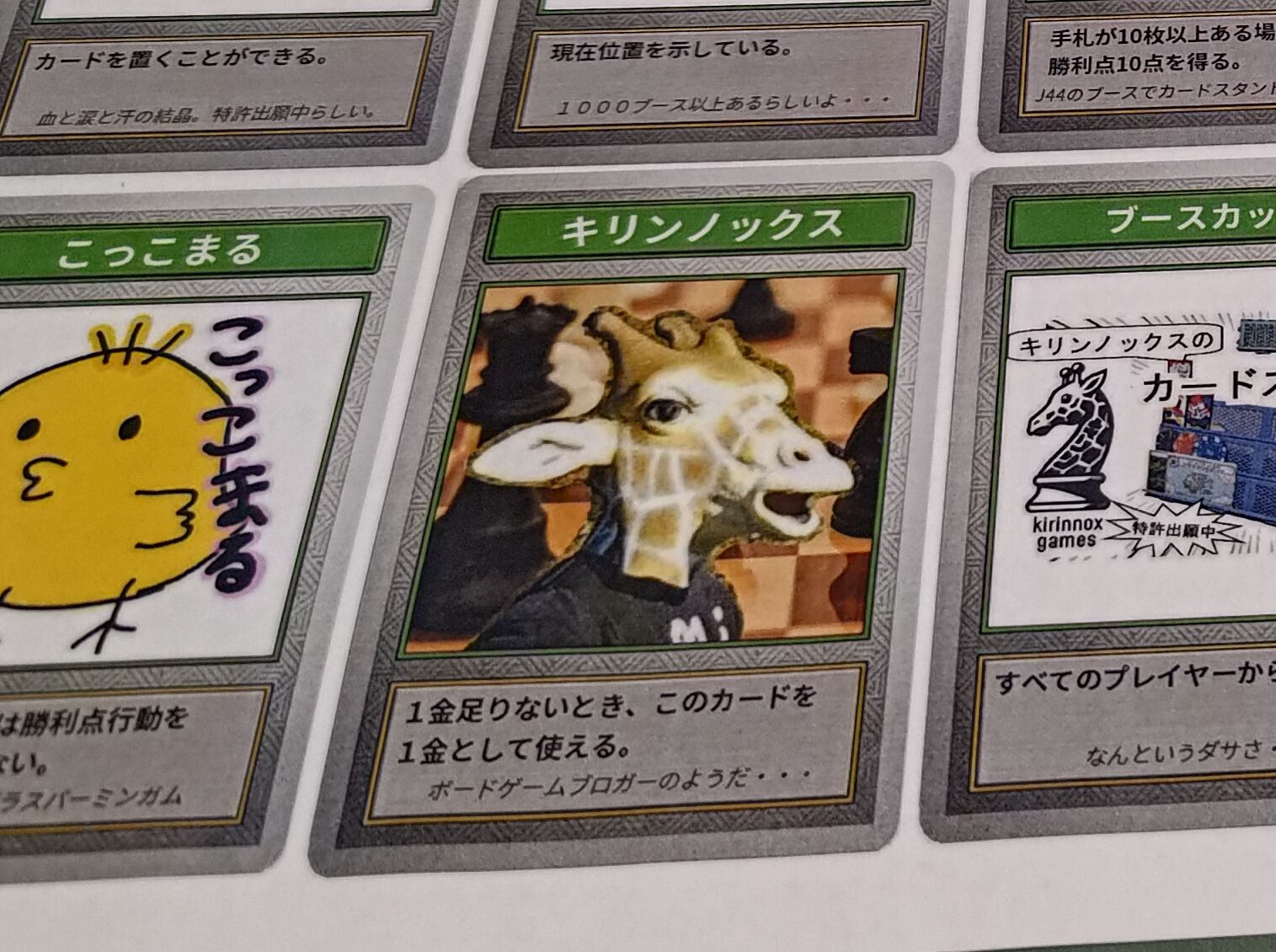今回初めて「おれという人間」が「キリンノックス」だと名乗ったわけで、ブースに実際に本人が立ったわけで、おれに恨みを持ってる人物がいたら(ブログでボードゲームをつまらないと言われた人?)やろうと思えばおれに嫌がらせができるわけですw(石を投げるとかw)