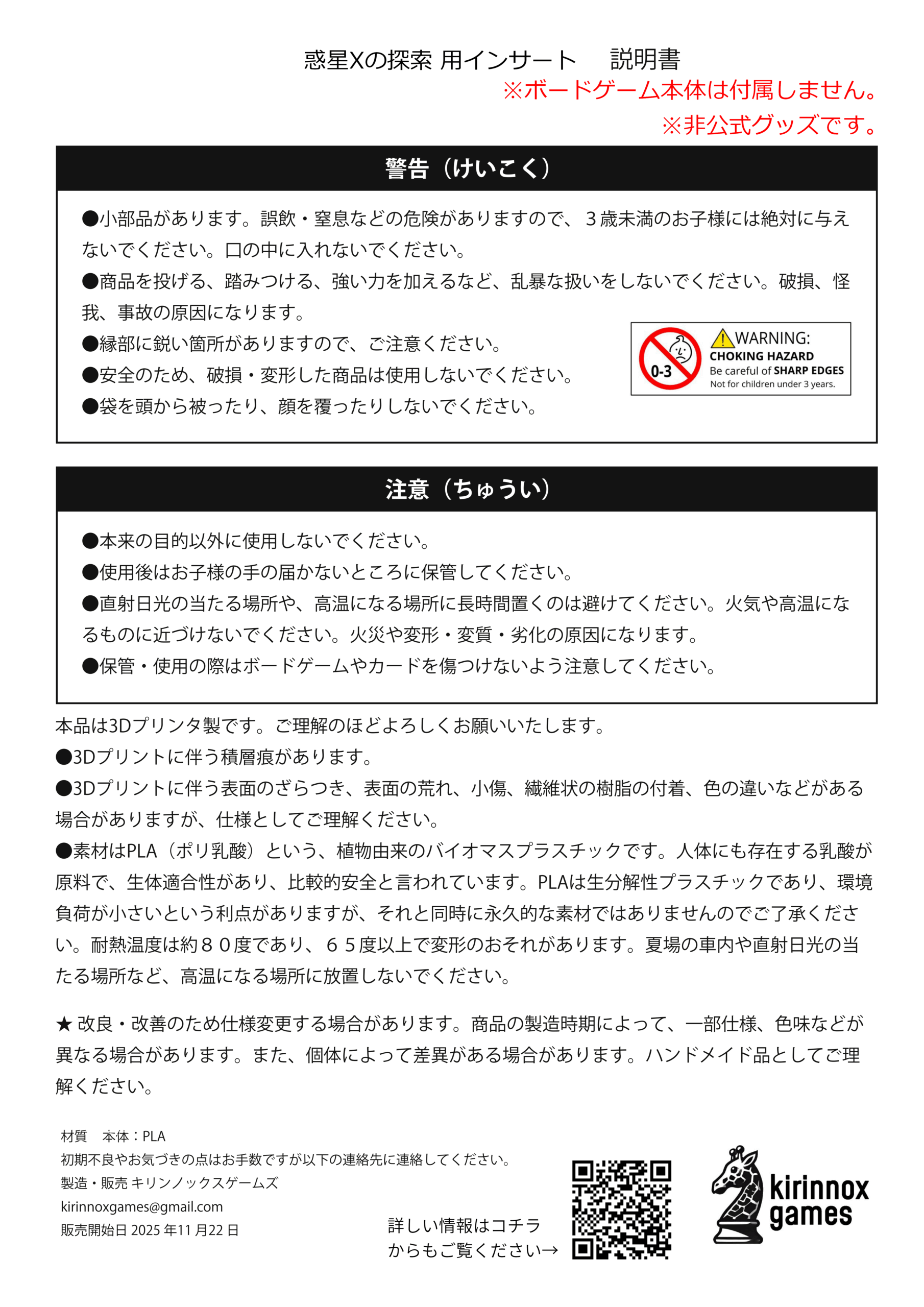 【ゲムマ2025秋両日】惑星Xの探索、インサート【キリンノックスの】